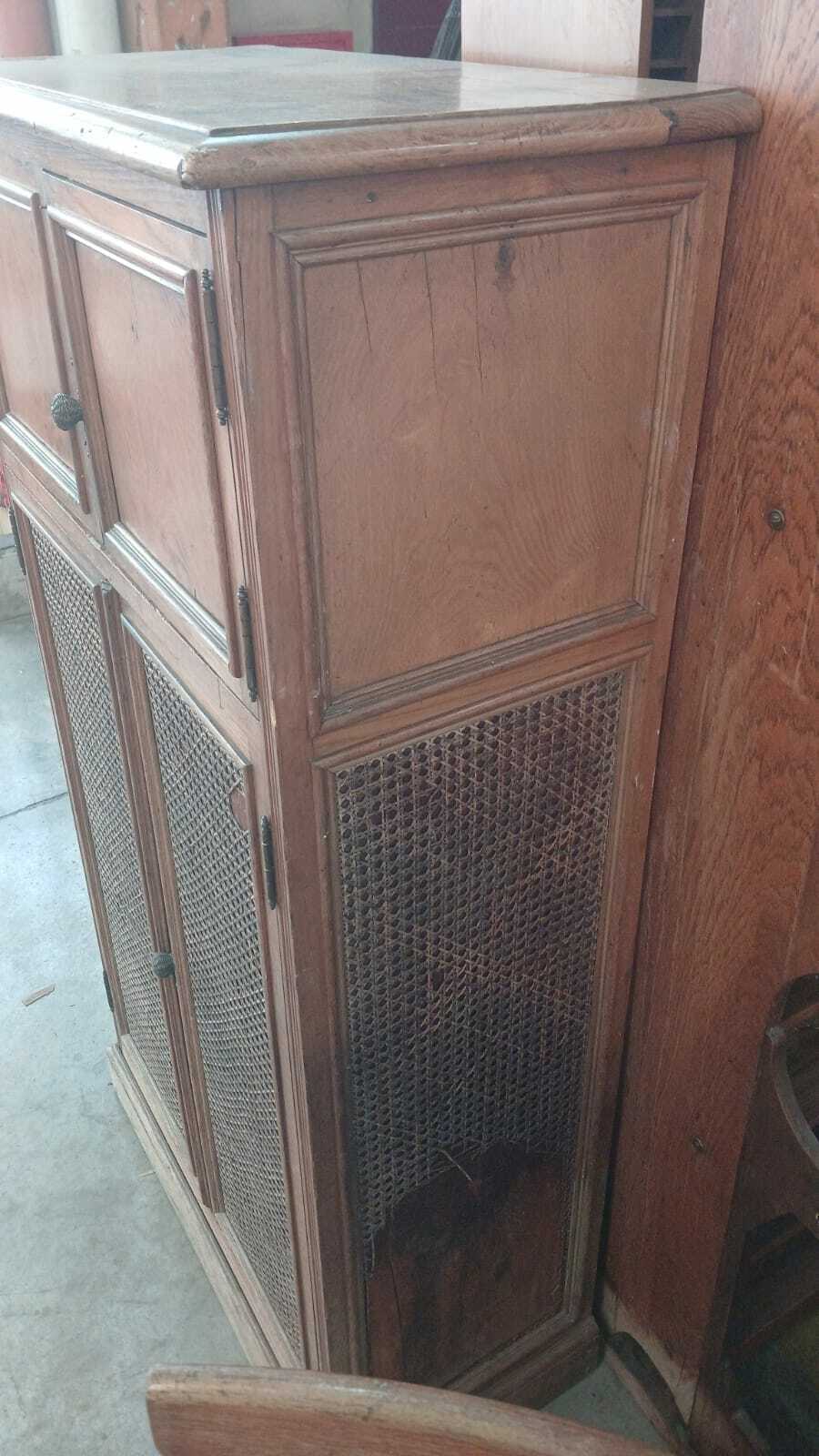 Descubri el Antiguo Botinero, un elegante mueble usado que combina la calidez de la madera de roble y la sofisticación de la esterilla.